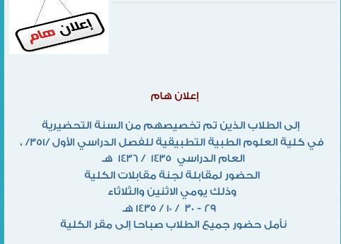 كلية العلوم الطبية التطبيقية المقابلات الشخصية للطلاب المستجدين