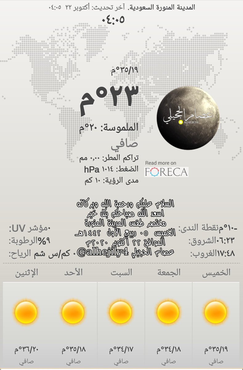 عصام الحجيلي Di Twitter صبحكم الله بالخير مختصر طقس المدينة المنورة الخميس ٢٠ محرم ١٤٤١هـ الموافق ١٩ سبتمبر ٢٠١٩م عصام الحجيلي Alhejily4